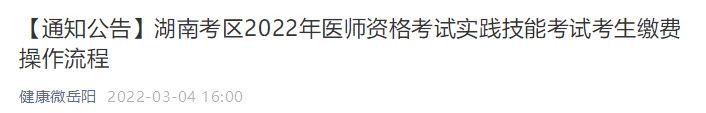 岳陽考點轉(zhuǎn)2022年湖南考區(qū)醫(yī)師資格考試實踐技能考生繳費流程