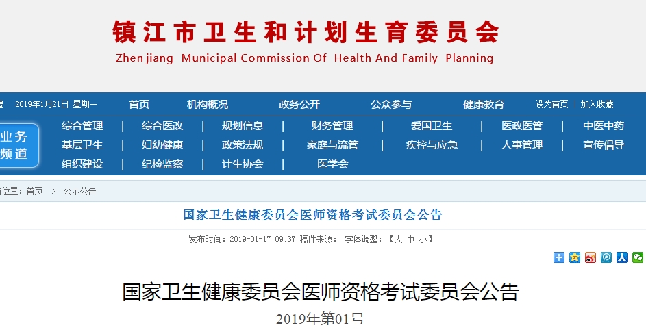 2019年國(guó)家醫(yī)師資格考試江蘇省鎮(zhèn)江市相關(guān)問(wèn)題公告,具體信息醫(yī)學(xué)教育網(wǎng)小編為鎮(zhèn)江市考生整理如下: