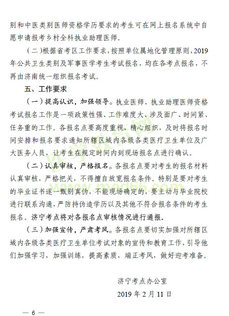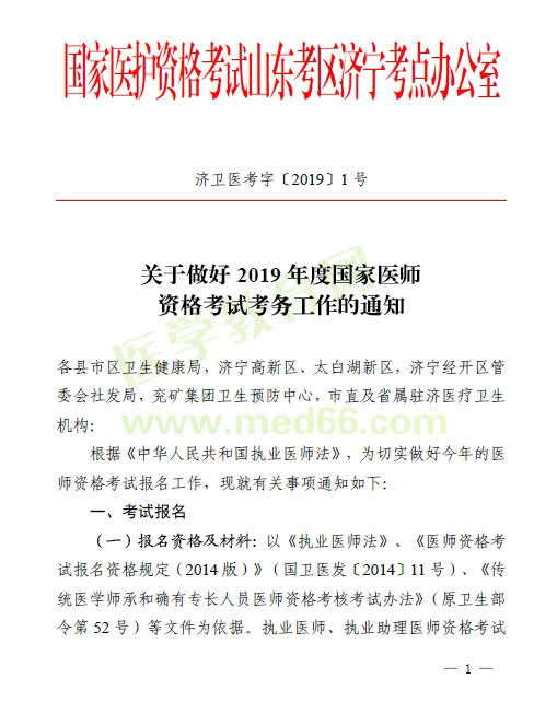 附件:濟衛(wèi)醫(yī)考字〔2019〕1號關(guān)于做好2019年度國家醫(yī)師資格考試考務(wù)工作的通知.pdf
