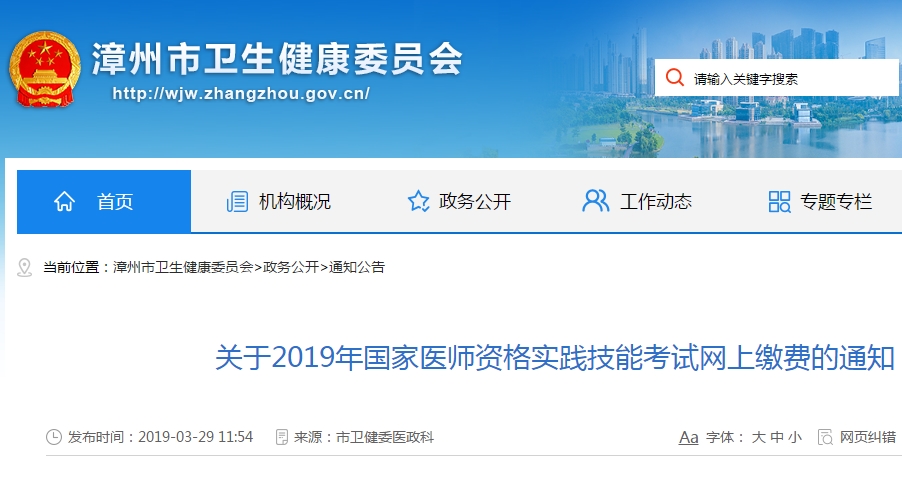 漳州市衛(wèi)健委醫(yī)政科:關(guān)于2019年國(guó)家醫(yī)師資格實(shí)踐技能考試網(wǎng)上繳費(fèi)的通知