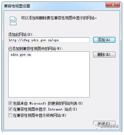 2. 在“將該網(wǎng)站添加到區(qū)域”欄輸入“http://zfwg.sdcz.gov.cn/ops”,點“添加”按鈕。