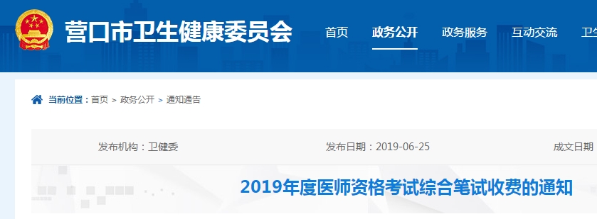 遼寧省營口市2019年醫(yī)師資格考試筆試收費公告現(xiàn)已公布,醫(yī)學(xué)教育網(wǎng)編輯將具體通知內(nèi)容分享如下: