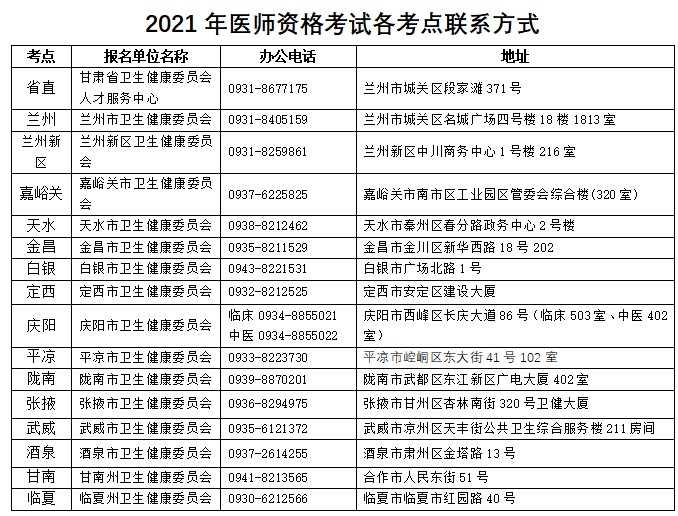 甘肅省2021年醫(yī)師資格考試各考點(diǎn)聯(lián)系方式、審核常見問題咨詢