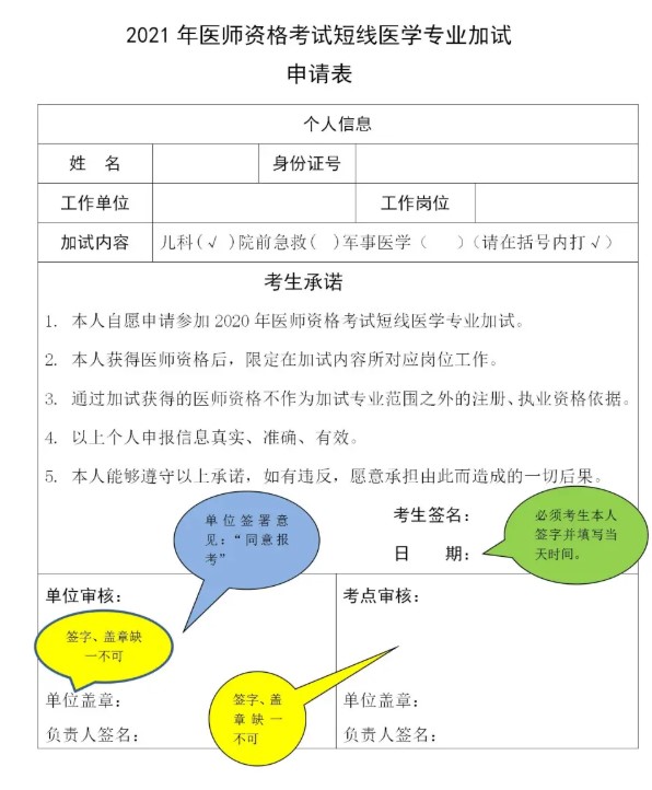 甘肅省2021年醫(yī)師資格考試短線醫(yī)學專業(yè)加試申請表怎么填寫?