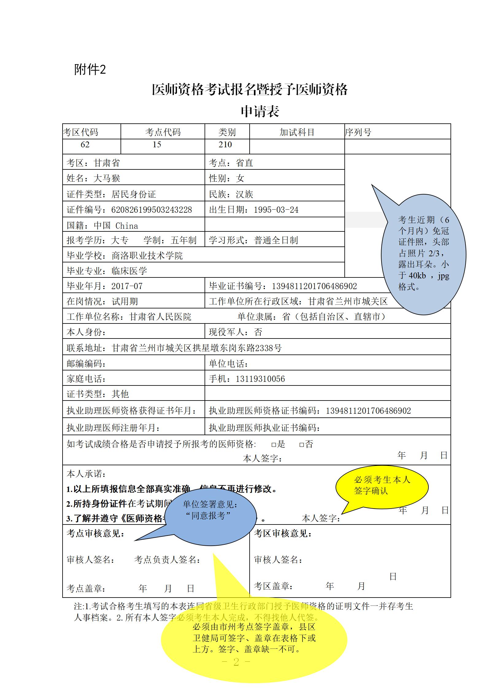1.考試合格考生填寫的本表連同省級衛(wèi)生行政部門授予醫(yī)師資格的證明文件一并存考生人事檔案。