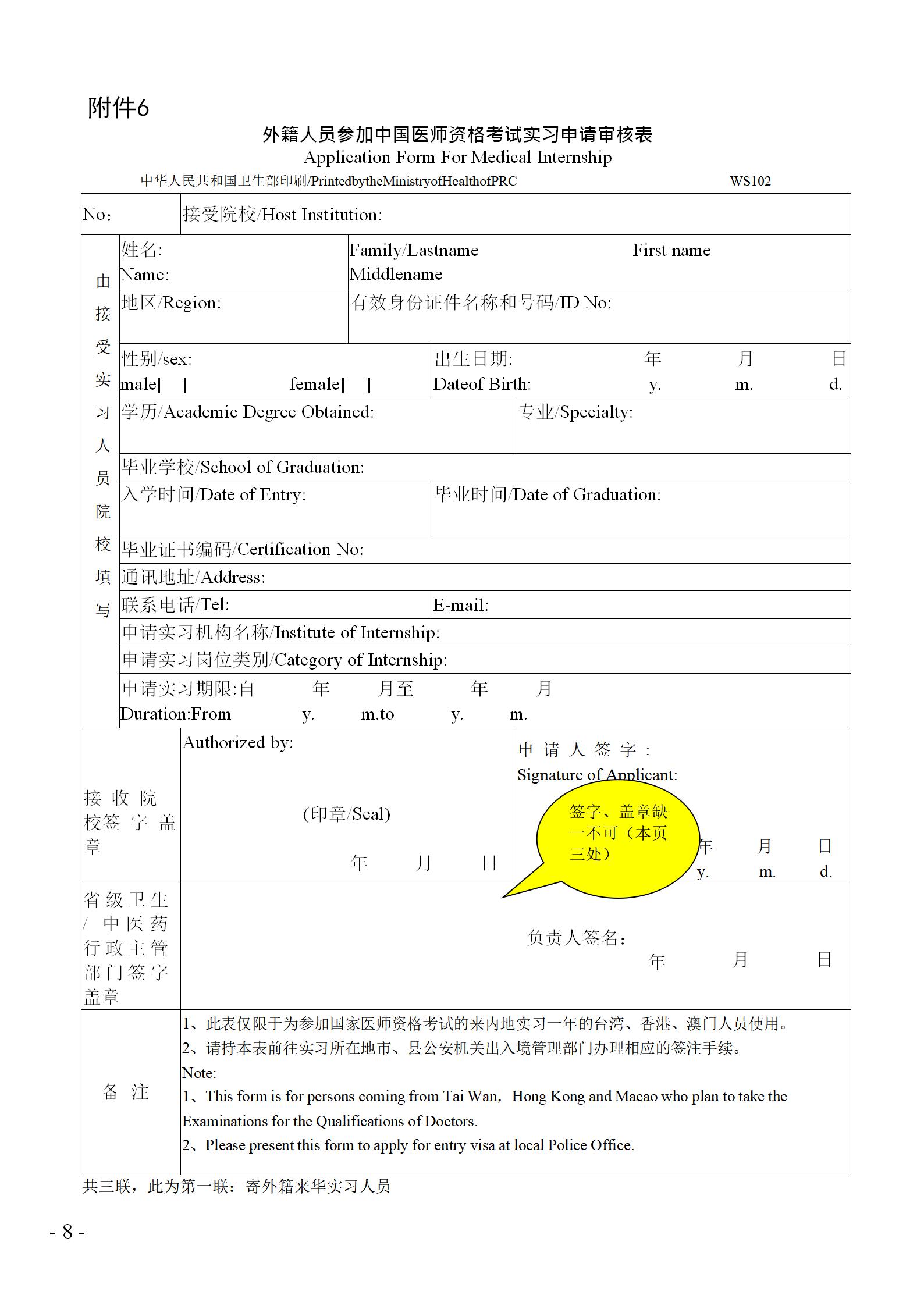 外籍人員參加酒泉市2021年中國(guó)醫(yī)師資格考試實(shí)習(xí)申請(qǐng)審核表