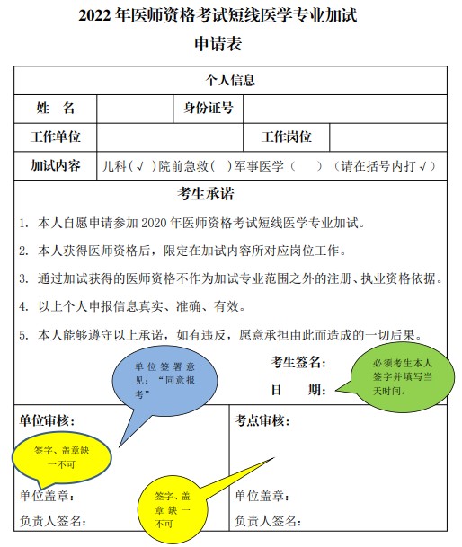 2022年醫(yī)師資格考試短線醫(yī)學(xué)專業(yè)加試申請表填寫注意事項(xiàng)