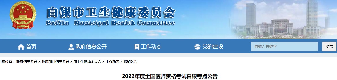 2022年度全國醫(yī)師資格考試白銀考點公告