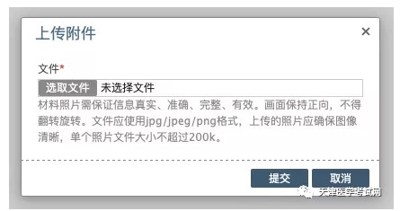 (2)文件應(yīng)使用jpg/jpeg/png格式,上傳的照片應(yīng)確保圖像清晰,單個(gè)照片文件大小不超過(guò)200k。