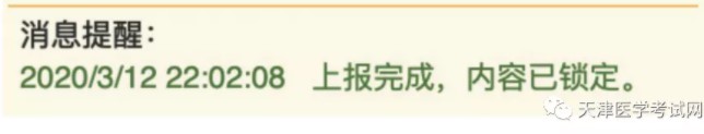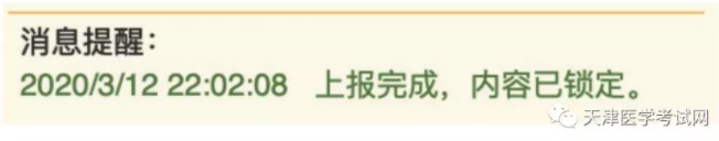 注意:提交后,考生界面會(huì)顯示上報(bào)完成,內(nèi)容已鎖定的提示(鎖定即無(wú)法自行修改上傳材料),表示上傳成功。如下圖提示: