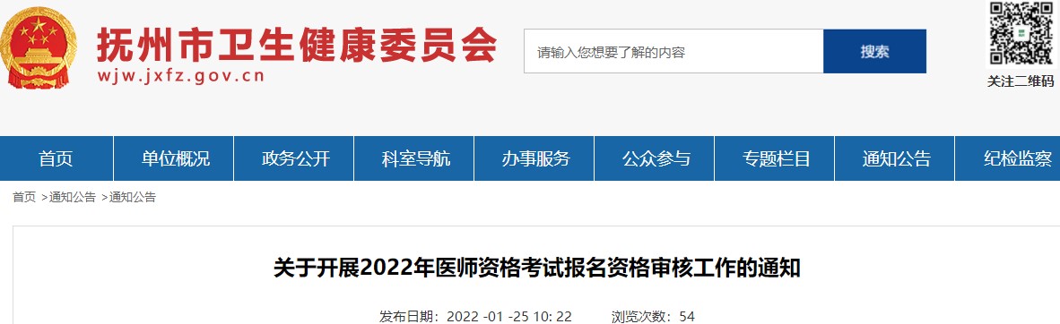 撫州市衛(wèi)健委關(guān)于開展2022年醫(yī)師資格考試報(bào)名資格審核工作的通知
