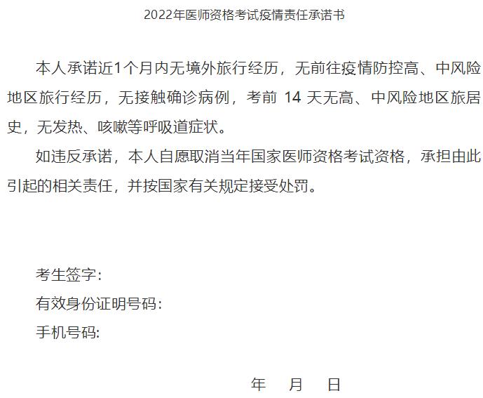 2022年醫(yī)師資格考試疫情責(zé)任承諾書