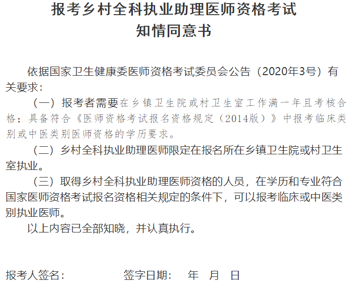 漯河市2022年報考鄉(xiāng)村全科執(zhí)業(yè)助理醫(yī)師資格考試知情同意書