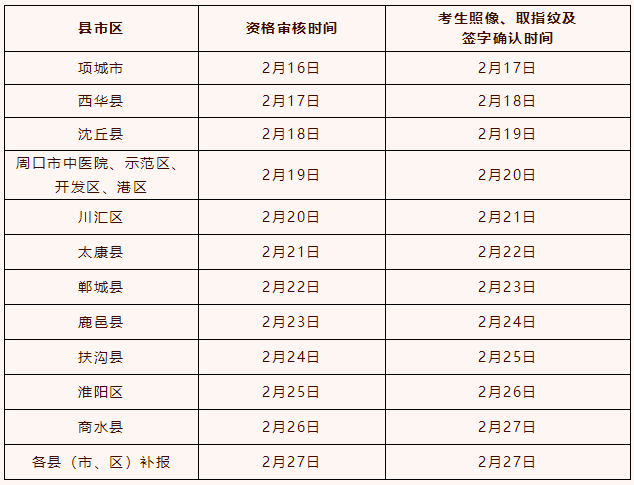 2、各縣市區(qū)衛(wèi)生健康委嚴(yán)格按照《審核細(xì)則》對考生報(bào)名資格進(jìn)行初審,將初審合格的考生報(bào)名材料按照2022年醫(yī)師資格考試報(bào)名周口考點(diǎn)(中醫(yī)類別)現(xiàn)場確認(rèn)日程安排報(bào)送至現(xiàn)場審核地點(diǎn)進(jìn)行集中審核。經(jīng)市級審核合格的考生由各縣市區(qū)衛(wèi)生健康委中醫(yī)股(科)通知考生于次日至現(xiàn)場審核地點(diǎn)進(jìn)行錄指紋和照相。