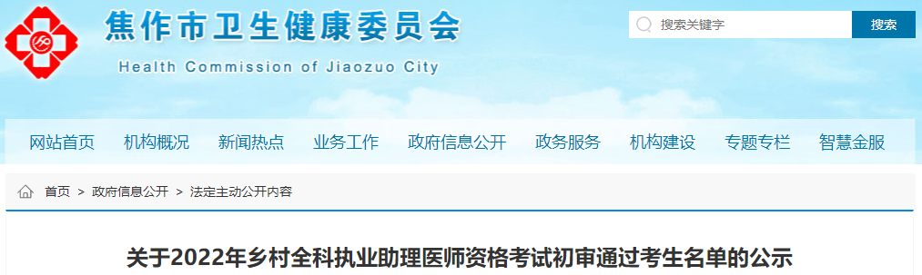焦作市關(guān)于2022年鄉(xiāng)村全科執(zhí)業(yè)助理醫(yī)師資格考試初審?fù)ㄟ^(guò)考生名單的公示