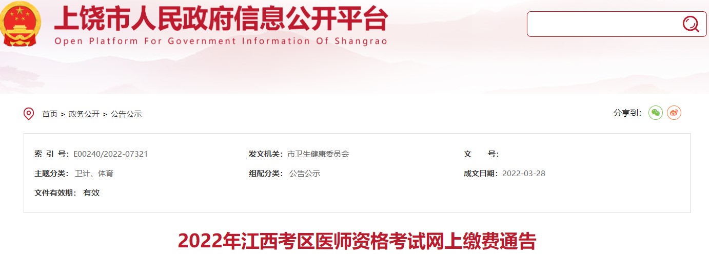 上饒市轉(zhuǎn)發(fā)2022年江西考區(qū)醫(yī)師資格考試實踐技能繳費的通知