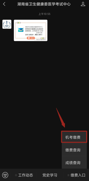 湖南?。涸凇昂鲜⌒l(wèi)生健康委醫(yī)學(xué)考試中心”微信公眾號(hào),進(jìn)行網(wǎng)上繳費(fèi)。