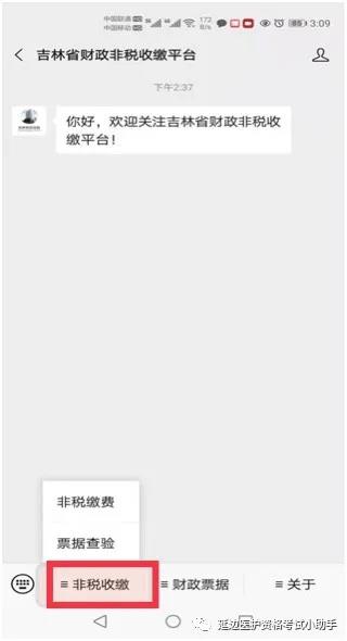 二、關注“吉林省財政非稅收繳平臺”,點左下角“非稅收繳”
