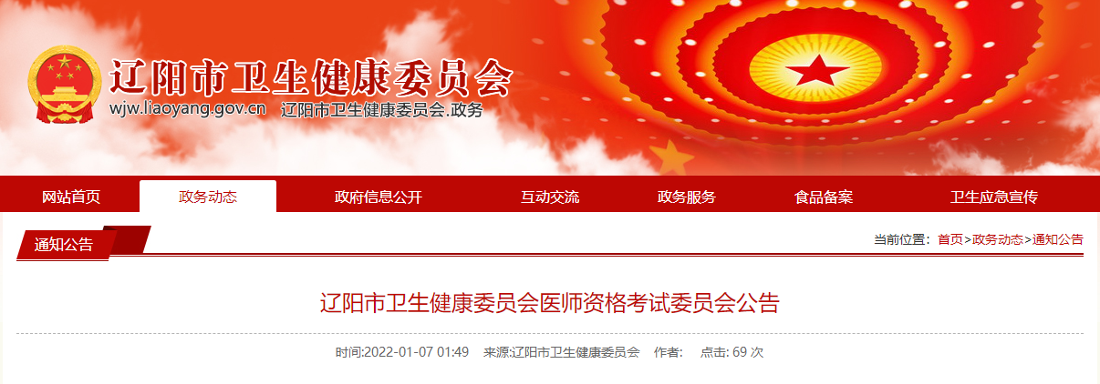遼寧考區(qū)遼陽(yáng)考點(diǎn)2022年醫(yī)師資格考試報(bào)名/審核時(shí)間及有關(guān)事項(xiàng)的公告