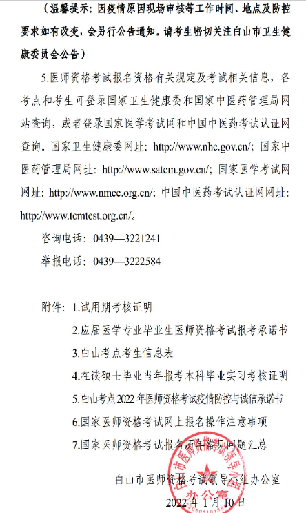 白山考點(diǎn)關(guān)于2022年國家醫(yī)師資格考試有關(guān)事項(xiàng)的公告