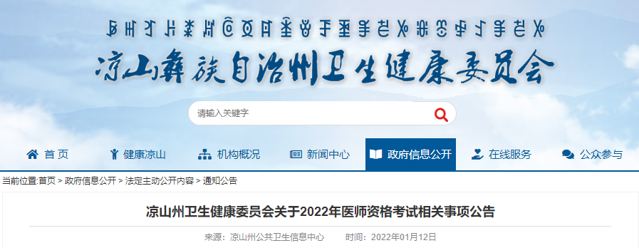 涼山州衛(wèi)生健康委員會(huì)關(guān)于2022年醫(yī)師資格考試相關(guān)事項(xiàng)公告