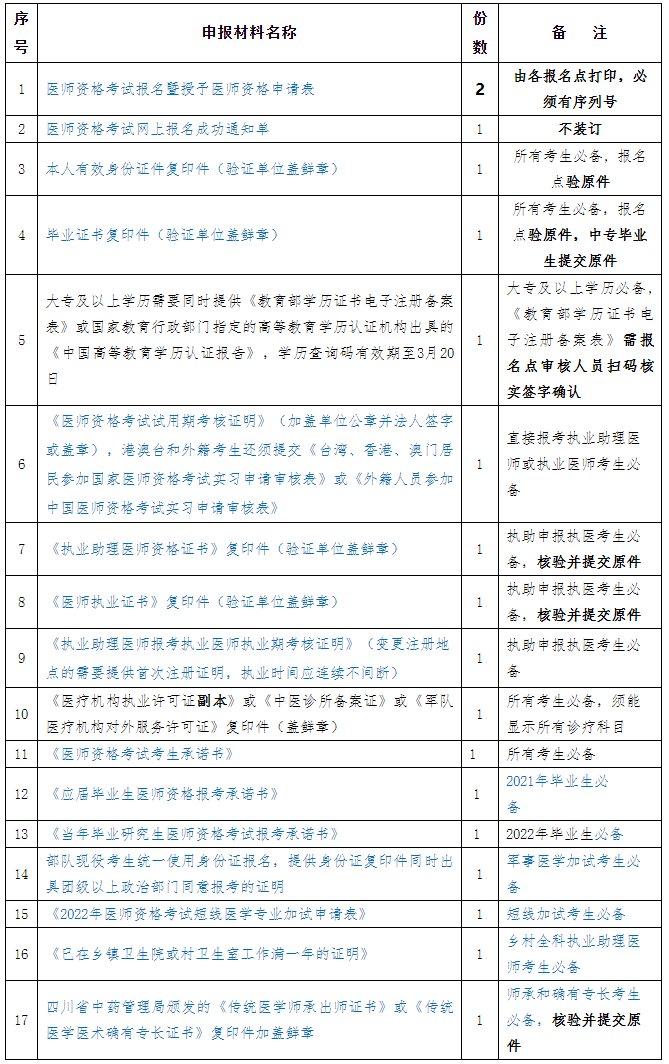 2.資料按照此序號順序裝訂整齊。復(fù)印件要求完整、清楚,提交的復(fù)印件一律使用A4紙張,其原件均由所在的醫(yī)療機(jī)構(gòu)及各報名點核驗,并在復(fù)印件上加蓋所在醫(yī)療機(jī)構(gòu)公章。