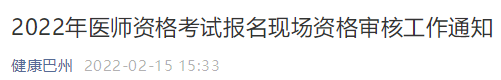巴中市巴州區(qū)衛(wèi)生健康局關(guān)于2022年醫(yī)師資格考試報(bào)名現(xiàn)場(chǎng)資格審核工作通知