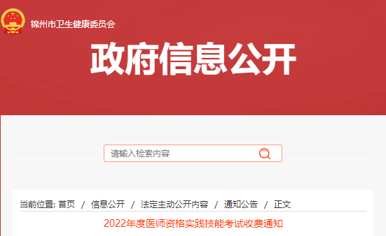 遼寧錦州考點(diǎn)2022年度醫(yī)師資格實(shí)踐技能考試收費(fèi)通知