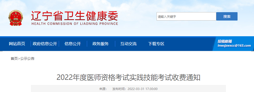 遼寧2022年度醫(yī)師資格考試實(shí)踐技能考試收費(fèi)通知