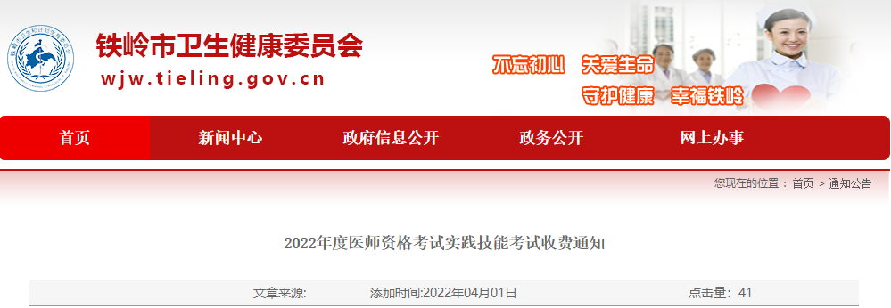 遼寧鐵嶺2022年度醫(yī)師資格考試實踐技能考試收費通知!
