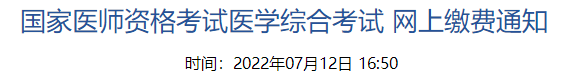 2022年國家醫(yī)師資格考試醫(yī)學(xué)綜合考試?yán)U費時間為7月13日上午9點至7月22日24點,規(guī)定時間內(nèi)未成功繳費不能參加考試。