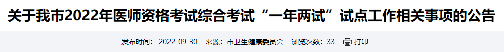 關(guān)于德陽(yáng)市2022年醫(yī)師資格考試綜合考試“一年兩試”試點(diǎn)工作相關(guān)事項(xiàng)的公告