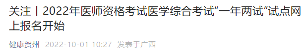 廣西賀州市2022年醫(yī)師資格考試醫(yī)學綜合考試“一年兩試”試點網(wǎng)上報名通知