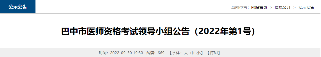 2022年醫(yī)師資格考試醫(yī)學(xué)綜合考試“一年兩試”巴中考點(diǎn)報名有關(guān)事項(xiàng)公告
