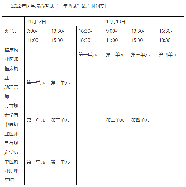 1.2022年醫(yī)學(xué)綜合考試“一年兩試”試點(diǎn)時(shí)間安排