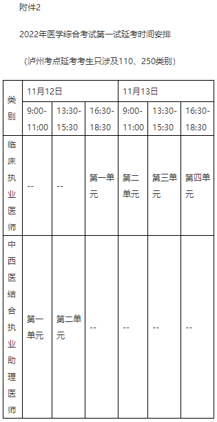 2.2022年醫(yī)學(xué)綜合考試第一試延考時(shí)間安排