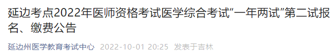 延邊考點2022年醫(yī)師資格考試醫(yī)學綜合考試“一年兩試”第二試報名、繳費公告