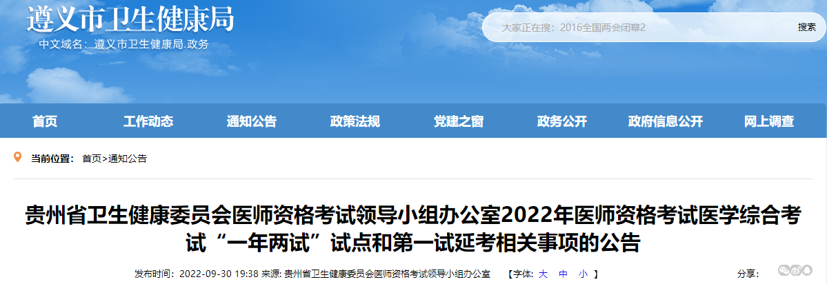 ?貴州省遵義市2022醫(yī)師資格考試綜合筆試(二試)報(bào)名&考試時(shí)間安排