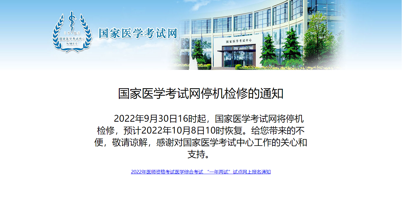 【預(yù)計2022年10月8日10時恢復(fù)】國家醫(yī)學(xué)考試網(wǎng)停機(jī)檢修的通知