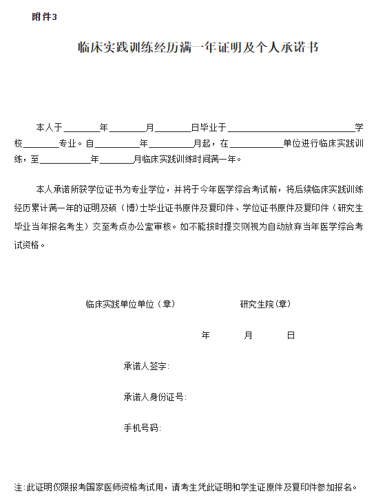 【承諾書下載】臨床實踐訓(xùn)練經(jīng)歷滿一年證明及個人承諾書