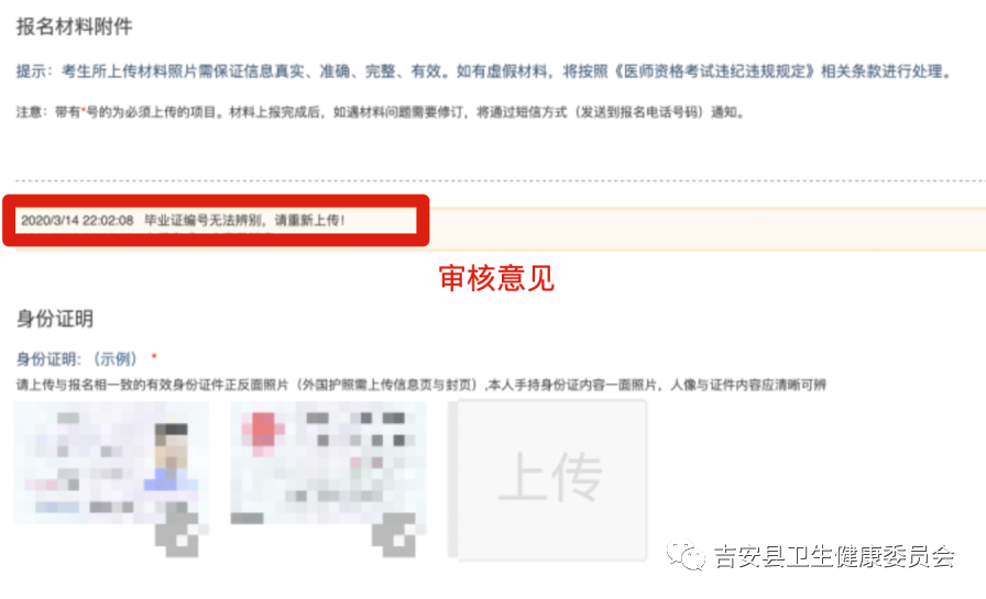 如果某圖片不符合要求,考生可以查看上傳界面最上方的審核意見進行修改,修改成功后,等待再次審核即可。