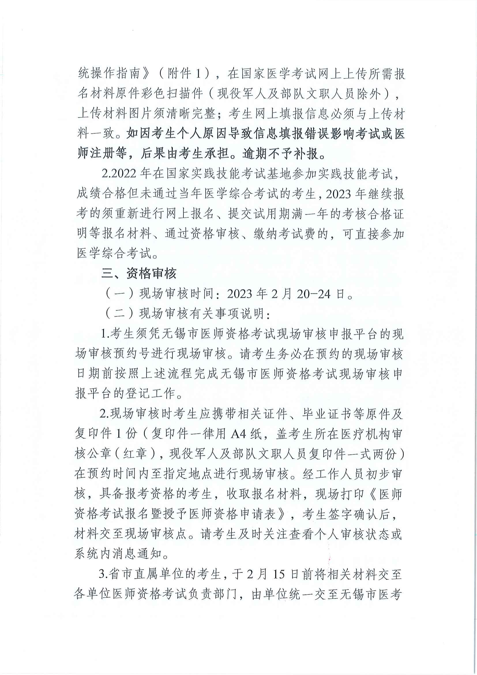 1.2023國家醫(yī)師資格考試無錫考點現(xiàn)場審核安排