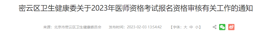 密云區(qū)衛(wèi)生健康委關(guān)于2023年醫(yī)師資格考試報(bào)名資格審核有關(guān)工作的通知