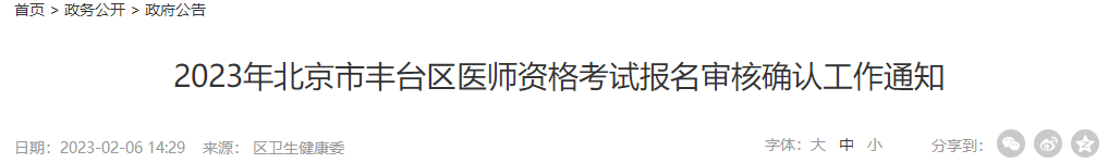 2023年北京市豐臺區(qū)醫(yī)師資格考試報名審核確認工作通知