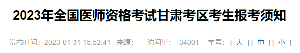 2023年全國醫(yī)師資格考試甘肅考區(qū)考生報考須知