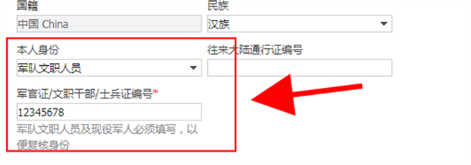 (二)現(xiàn)役軍人和部隊文職人員報名時,須使用有效的居民身份證進(jìn)行申報,在網(wǎng)報系統(tǒng)本人身份一欄中選擇相應(yīng)的“軍人”身份,并填寫相關(guān)的軍官證、警官證、文職干部證、士兵(官)證和軍隊學(xué)員證等證件號碼。