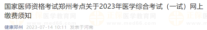 ?河南鄭州考點關于2023年醫(yī)學綜合考試(一試)網(wǎng)上繳費須知