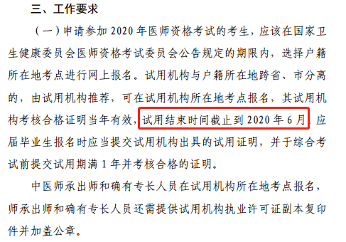 伊春2020年醫(yī)師資格考試試用期證明截止時(shí)間,具體內(nèi)容醫(yī)學(xué)教育網(wǎng)整理如下: