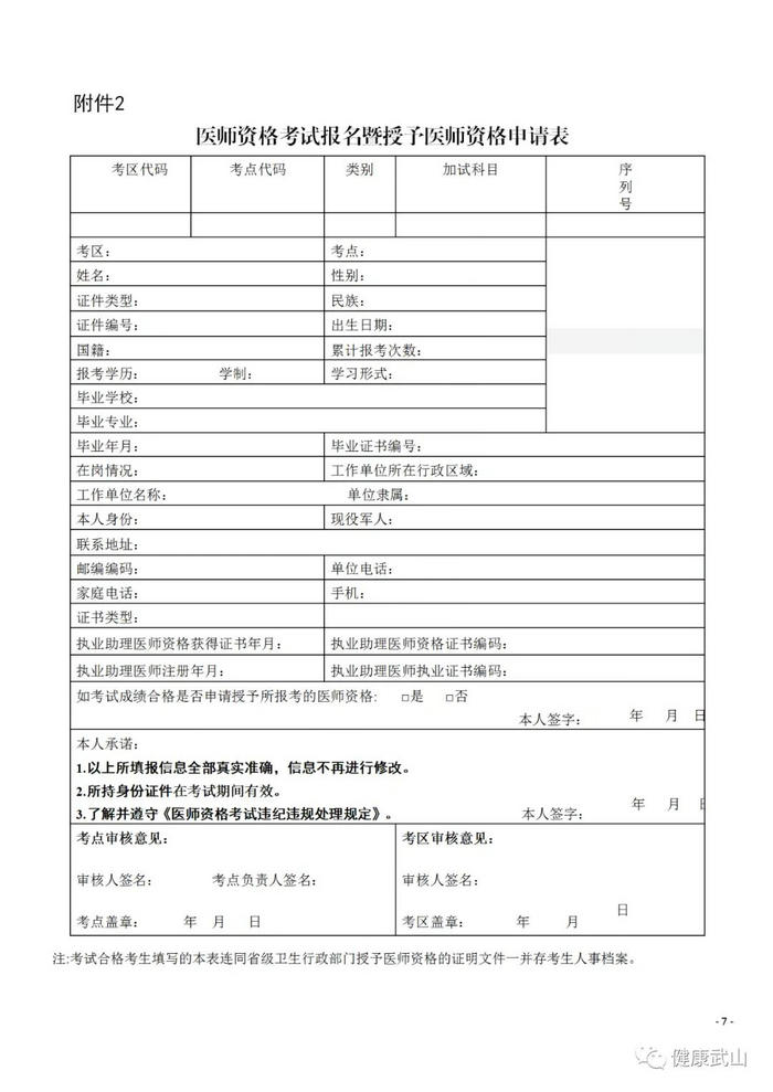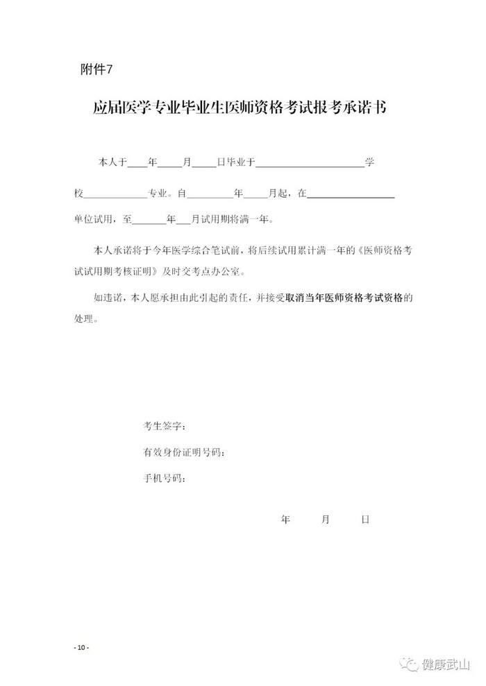 9.應(yīng)屆畢業(yè)生還須填寫《應(yīng)屆醫(yī)學(xué)專業(yè)畢業(yè)生醫(yī)師資格考試報考承諾書》(附件7)。