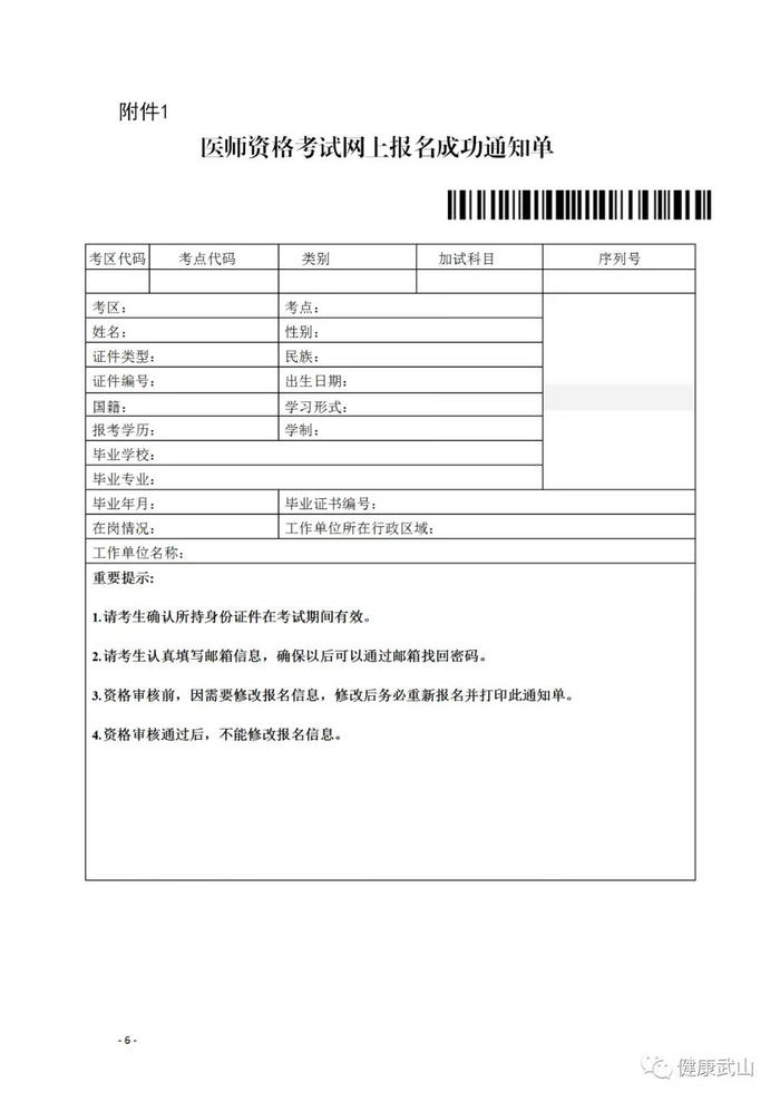 1.醫(yī)師資格考試網(wǎng)上報名成功通知單(附件1)(考生自行登錄國家醫(yī)學(xué)考試中心網(wǎng)站打?。?。